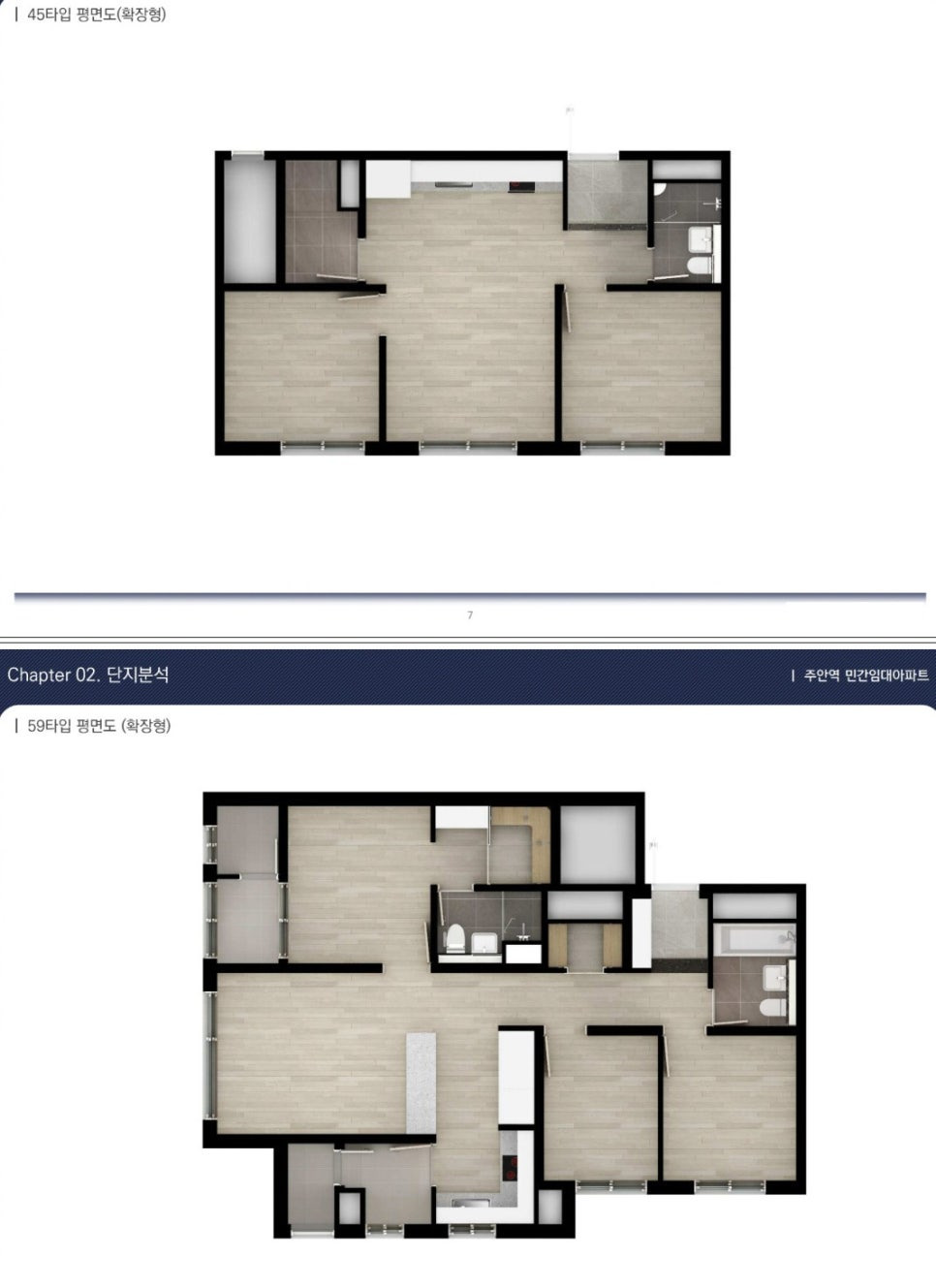 - 45㎡: 1인 가구, 신혼부부, 학생 등 소형 평형 선호층